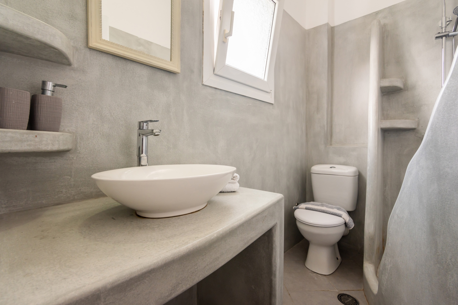 Για να παρέχει ανεμπόδιστη θέα στη θάλασσα σε όλους μας τους επισκέπτες, το συγκρότημά μας έχει χτιστεί σε τοποθεσία με κλίση, κάτι που επιτρέπει στα διαμερίσματά μας να έχουν θέα πρώτου ορόφου αλλά την είσοδό τους στο ισόγειο, στην πίσω πλευρά του διαμερίσματος.