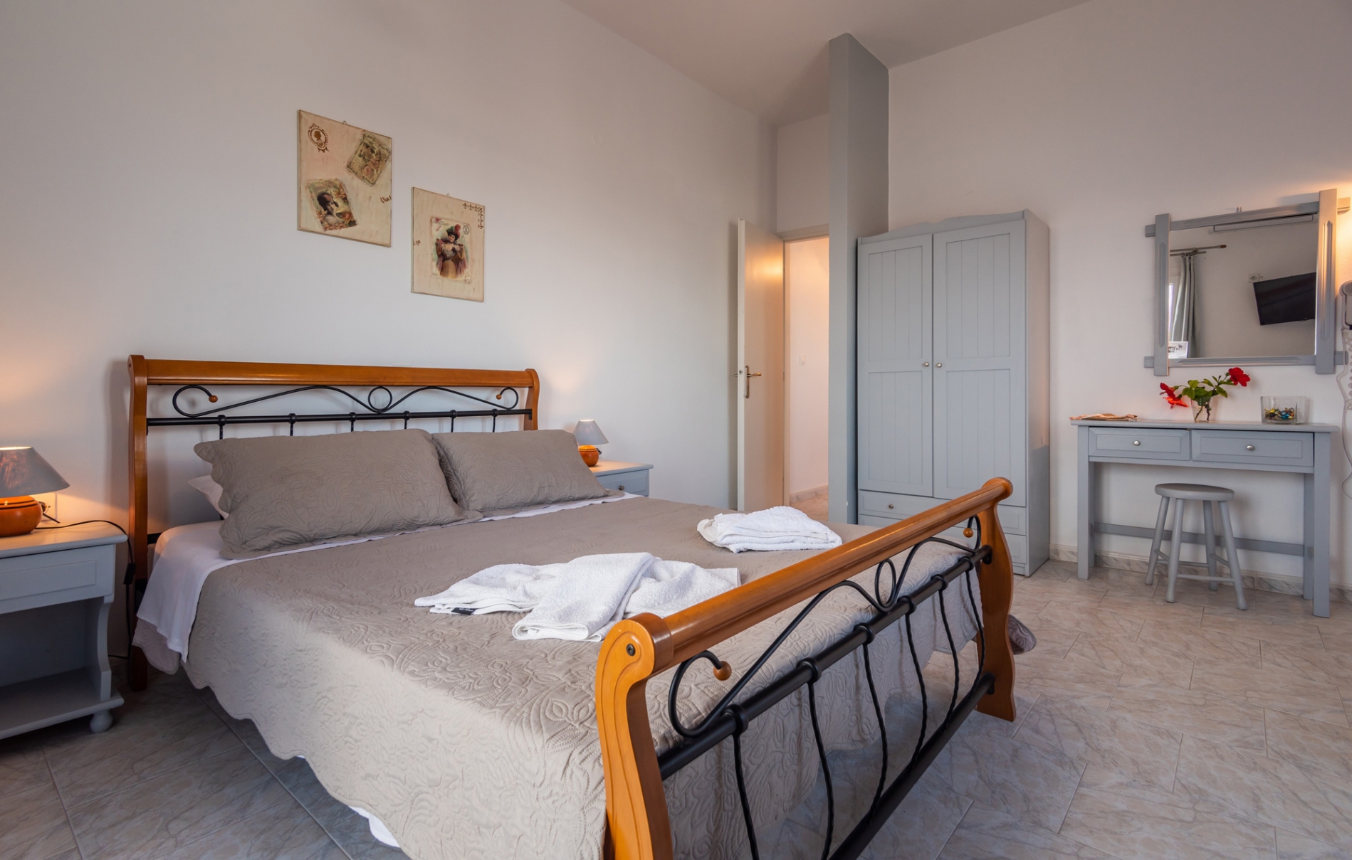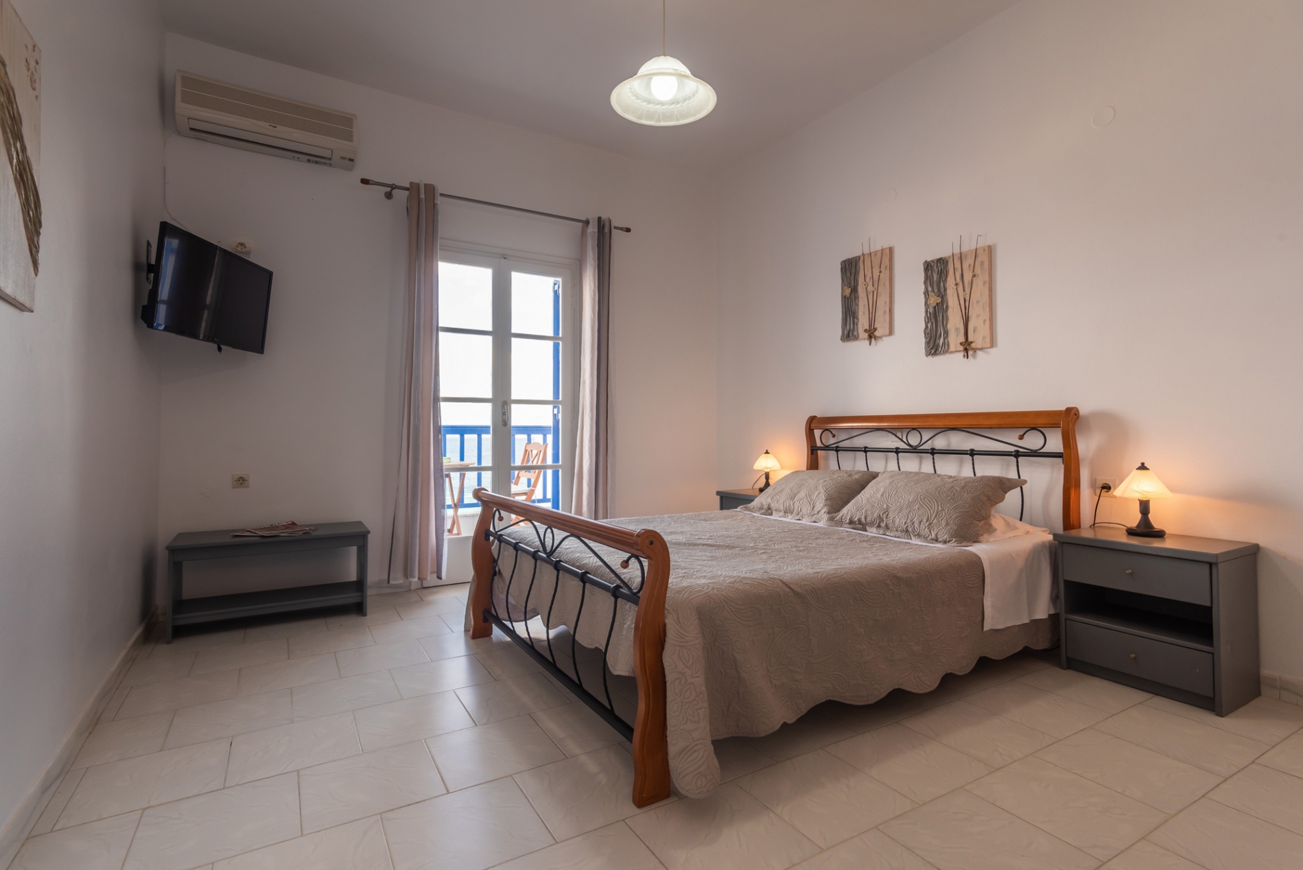 Τα 3 διαμερίσματα είναι ευρύχωρα και διαθέτουν ένα υπνοδωμάτιο με ένα άνετο διπλό κρεβάτι, ένα ανακαινισμένο μπάνιο με ντουζιέρα, ένα δωμάτιο με κουζινάκι και τραπέζι, για να απολαμβάνετε τα γεύματά σας και φυσικά μπαλκόνι με θέα στη θάλασσα για να χαλαρώνετε.